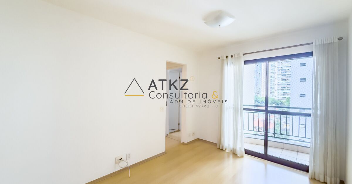 Apartamento reformado para locação no Brooklin com 60 m², 1 dormitório (2 suítes), 1 banheiro, varanda e 1 vaga de garagem coberta.